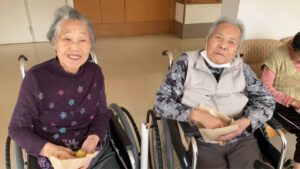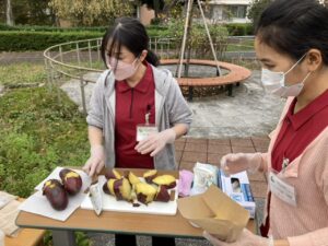 利用者様もほくほくの焼き芋を口にして笑顔が広がります。