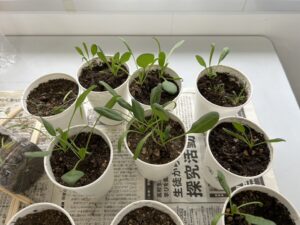 デイケア課では種を蒔いていた「ほうれん草」が芽を出し大きくなってきました