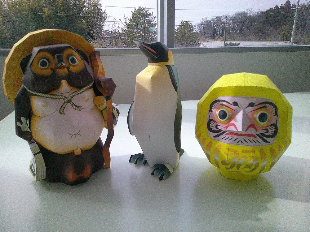 タヌキ・ペンギン・だるまのクラフト作品