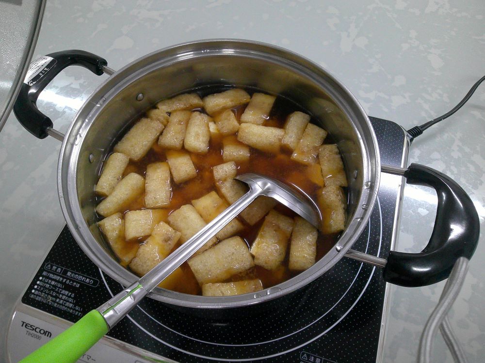 市販の油揚げを煮込み、お揚げから作ました