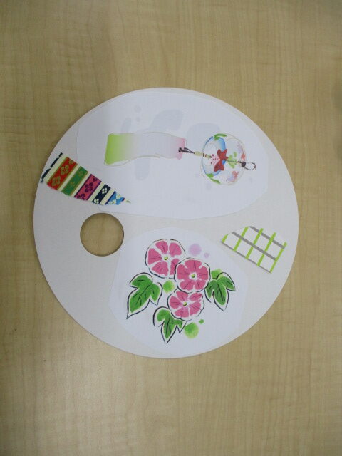 リハビリテーション課でうちわを夏らしくデコレーション