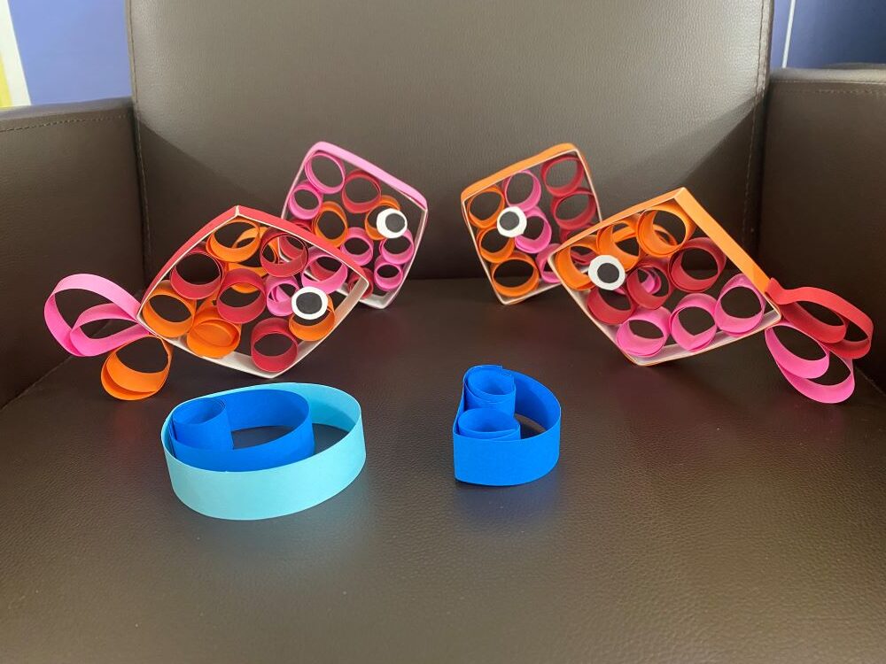 色画用紙を使いカラフルな金魚が出来ました